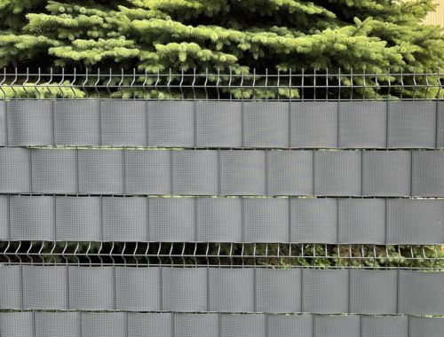 Hochwertiges und robuster Sichtschutz: Sichtschutzstreifen Polypropylen in Leder Optik Hergestellt aus erstklassigem Polypropylen in Lederoptik, bietet der Sichtschutzstreifen Polypropylen in Leder Optik mit einem Gewicht von etwa 1020 g/m² eine vollständige Blickdichtigkeit und ist dabei vollständig recycelbar. Durch das stabile Material werden nicht zwingend Befestigungsclips benötigt. Denn dank seiner einzigartigen Eigenschaften ist dieses Material selbsttragend und erfordert keine zusätzlichen Klemmen oder Schienen zur Befestigung. Robuste Eleganz für ihren Garten mit den Sichtschutzstreifen aus Polypropylen in Leder Optik Durch die Formstabilität und die außergewöhnliche Witterungsbeständigkeit, mit einer hohen UV-Beständigkeit und einer Temperaturbeständigkeit von -25 bis +90°C eignen sich die Sichtschutzstreifen aus Polypropylen in Leder Optik bestens für deinen Außenbereich. Die matte Oberfläche ist leicht strukturiert und verleiht Ihrem Zaun eine elegante Optik. Mit einer Materialstärke von etwa 1 mm bietet das Produkt eine beeindruckende Stabilität und lässt sich mühelos direkt von der Rolle in die senkrechten Drähte der Doppelstabzäune einflechten. Dank seines selbsttragenden Systems bleibt es frei von Zusammenfallen, Wellen oder Falten, was für eine makellose und ästhetisch ansprechende Optik sorgt. Deine Vorteile der Sichtschutzstreifen auf einen Blick Hochwertiges Sichtschutzmaterial in Lederoptik, ideal für Doppelstab-Mattenzäune Kann problemlos direkt in die senkrechten Drähte der Zäune eingeflochten werden Selbsttragend ohne die Notwendigkeit von Klemmen oder Schienen Ausgezeichnete Witterungsbeständigkeit und UV-Beständigkeit im Bereich von -30 bis +90°C Blickdicht und vollständig recyclebar Mattes Finish mit einer strukturierten Oberfläche für eine elegante Optik Robuste Materialstärke von ca 1 mm für bemerkenswerte Stabilität Kein Risiko von Zusammenfallen, Wellenbildung oder Falten Problemloses Zuschneiden mit einer handelsüblichen Schere Mehr Privatsphäre Mit unserem Sichtschutz wird dein Außenbereich zu einem Ort der Privatsphäre. Schluss mit unerwünschten Blicken und zugigem Wind – unser Sichtschutz bietet die Lösung. Verwandle deinen Garten in eine private Oase, in der du ungestört entspannen kannst. Die Installation ist kinderleicht und die Ästhetik wird dich überzeugen. Hol dir jetzt deinen eigenen Sichtschutz und erlebe die Veränderung! Einfache Montage Das Zuschneiden der benötigten Länge ist bei der 26m Sichtschutzrolle ein Kinderspiel. Die gewünschten Sichtschutzstreifen lassen sich mühelos zwischen die Doppelstabmatten einfädeln. Platziere die Streifen gleichmäßig und passe sie bei Bedarf an, um einen optimalen Sichtschutz zu erreichen. Die Streifen können entweder zwischen den Zaunpfosten und der Abdeckschiene geschoben oder über die Pfosten gespannt werden. DIE VORTEILE VON POLYPROPYLEN Nachhaltigkeit. Unser Produkt besteht zu 100 % aus recyclebarem Material. Es ist äußerst langlebig und widerstandsfähig. Dank seiner UV-Beständigkeit behält es seine Farbe über die Jahre ohne zu verblassen. Die Reinigung ist mühelos mit einem Gartenschlauch möglich. Es ist hitze- und kältebeständig und reißfest. Ästhetische Lederoptik So fädelt man Sichtschutzstreifen ein Beginne damit, den Sichtschutzstreifen auf die richtige Länge zuzuschneiden. Achte darauf, dass der Streifen etwa 4 cm länger ist als die Länge der Doppelstabmatten. Halte den Streifen fest und fädle ihn vorsichtig zwischen den Doppelstabmatten hindurch. Sobald der Streifen bis zum anderen Ende des Zauns gefädelt ist, ziehe ihn an beiden Seiten leicht nach, um eine gleichmäßige Spannung zu gewährleisten. Befestige den Streifen an beiden Enden des Zauns, indem du ihn zwischen den Pfosten und der Blende klemmst. Wiederhole diesen Vorgang für alle weiteren Sichtschutzstreifen, bis der gesamte Zaun abgedeckt ist.